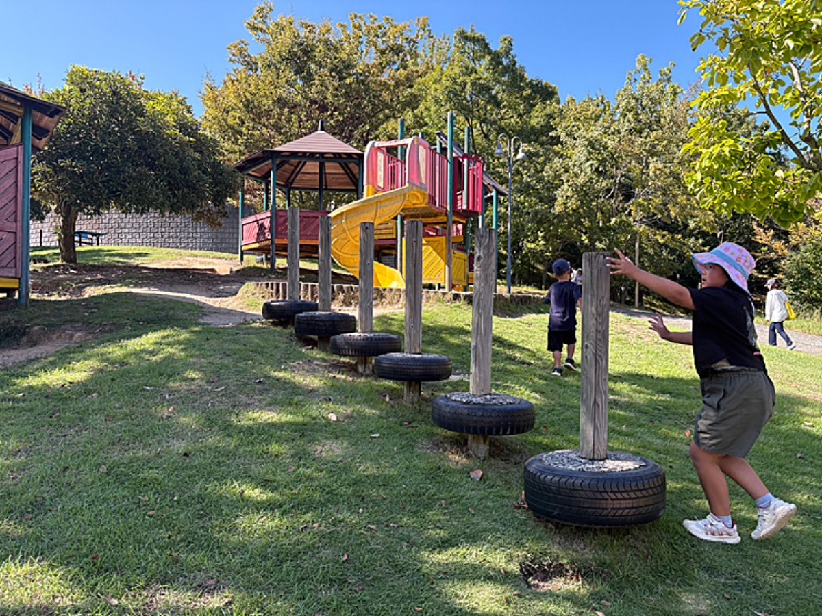 遊具のエリアは一部立て替え工事中でしたが、ちょっと変わったブランコなど、子どもたちが楽しめる遊具がいっぱい。