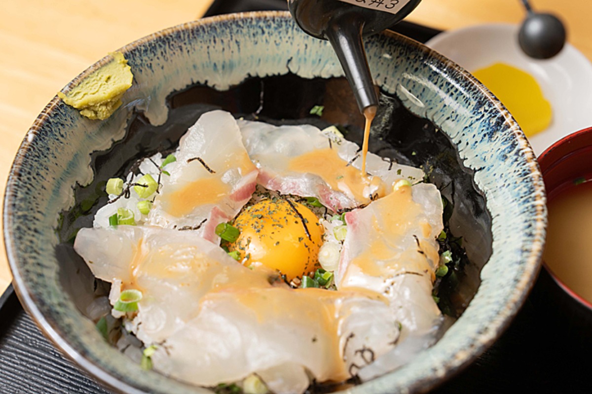豊かな環境で育てた養殖真鯛「ふかうら真鯛」を、特製のごまだれと卵黄を贅沢に絡めて!