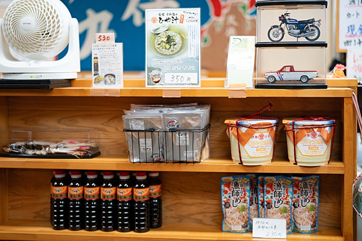 「ひや汁」や「炊き込み漁師めしの素」、「さしみしょうゆ」 など、お土産に喜ばれる品も揃う