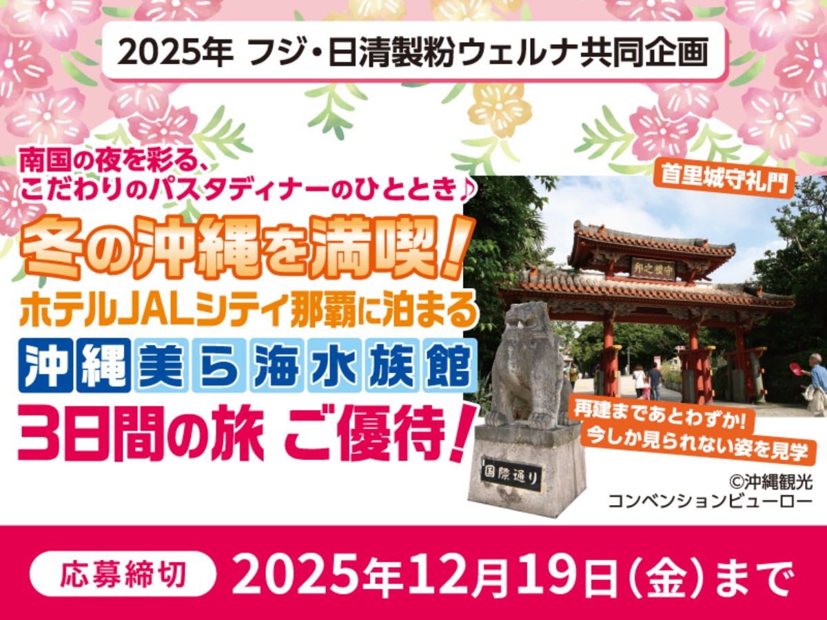 【フジ】11/7(金)-12/19(金)『フジ・日清製粉ウェルナ共同企画』冬の沖縄を満喫!3日間の旅ご優待!