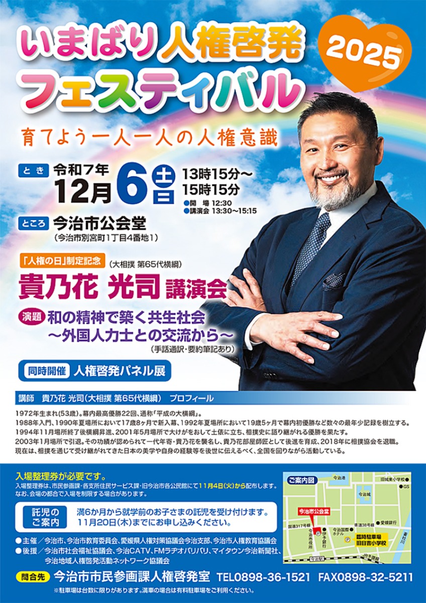 冬の澄んだ空気が街を包み込む12月、今治市で「いまばり人権啓発フェスティバル2025」が開催されます!