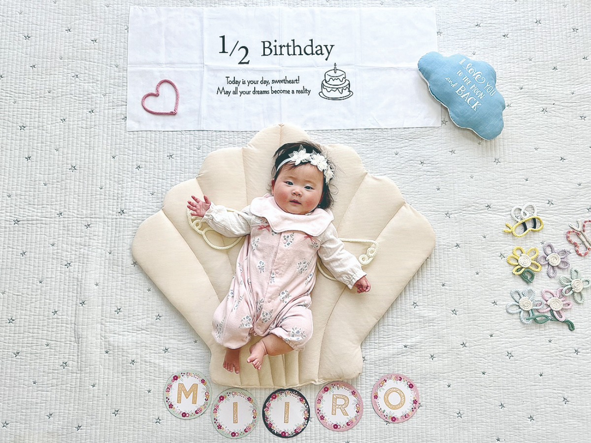 ▲日替わり親子イベントの様子。この日 はハーフバースデーの撮影会。