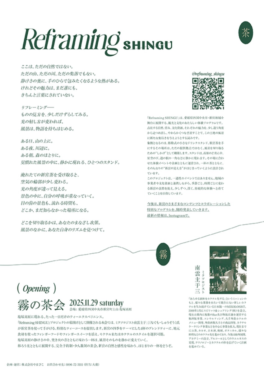 四国中央市新宮町で、新プロジェクトの始動を飾る一日限りのイベント「霧の茶会」が2025年11月29日(土)に開催。