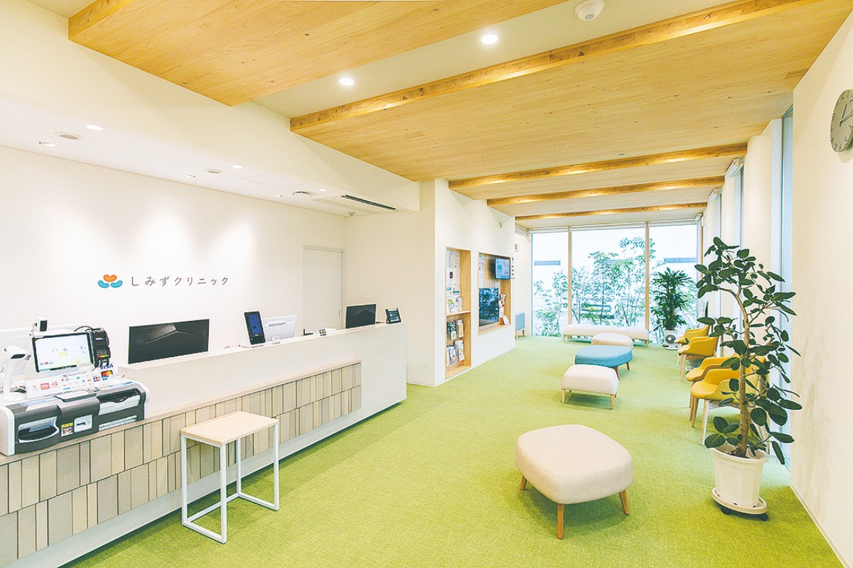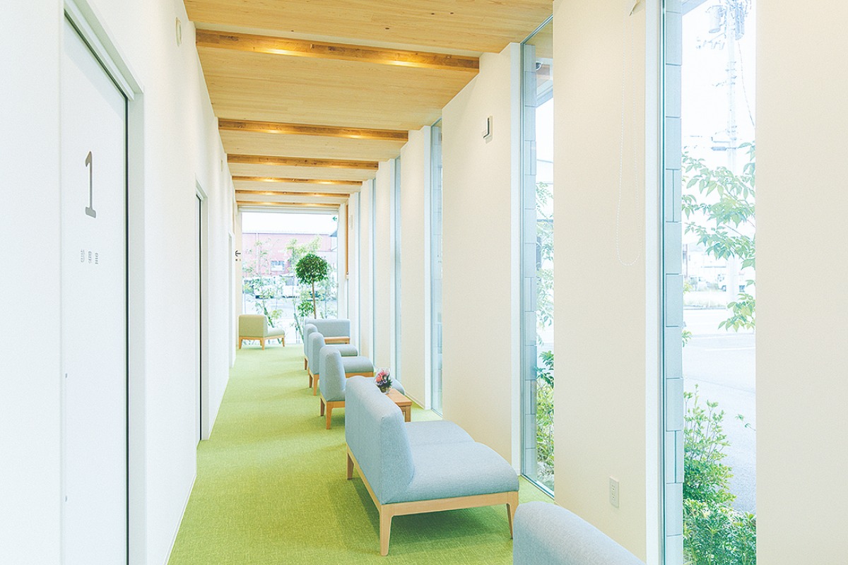 ▲木のぬくもりが感じられる院内。患者のプラ イバシーにも配慮した設計
