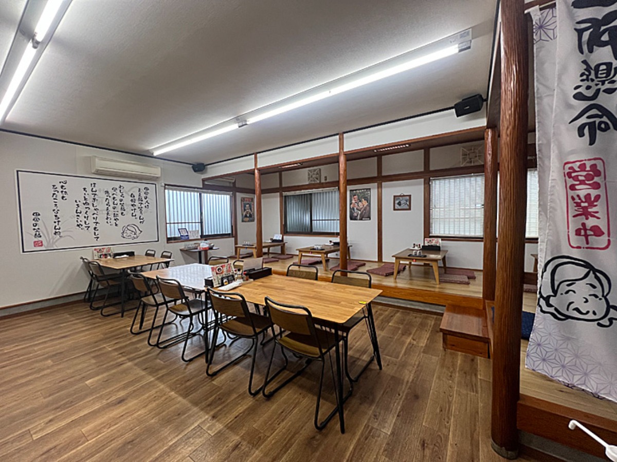 「おかあさんとこ」の店内には、4人掛けのテーブル席と、小上がり席があり、落ち着いた雰囲気で食事が楽しめます。