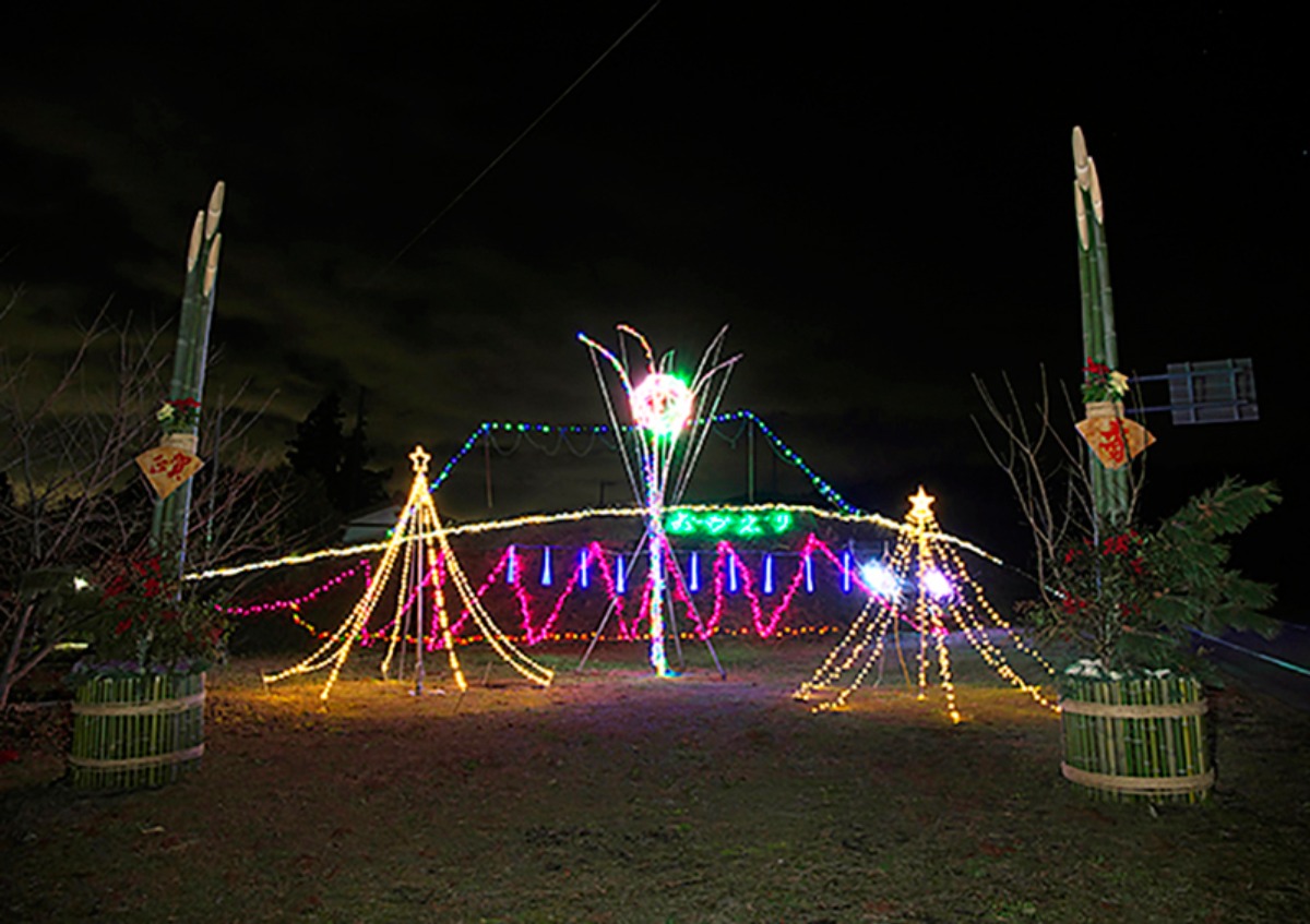 華美な演出よりも里山の穏やかな空気を大切にした優しい灯りが特徴で、都会の喧騒とは違った癒やしの時間が広がります。