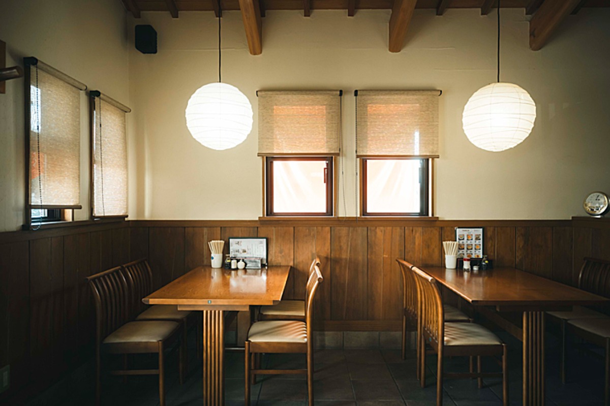 うどんや中華そばなどの麺類や丼もの、オムライスやカレーライスがおすすめで、夜は定食メニューも楽しめる。