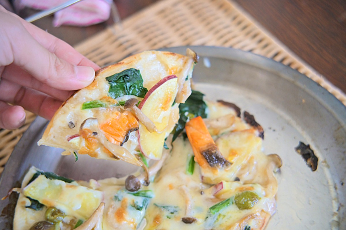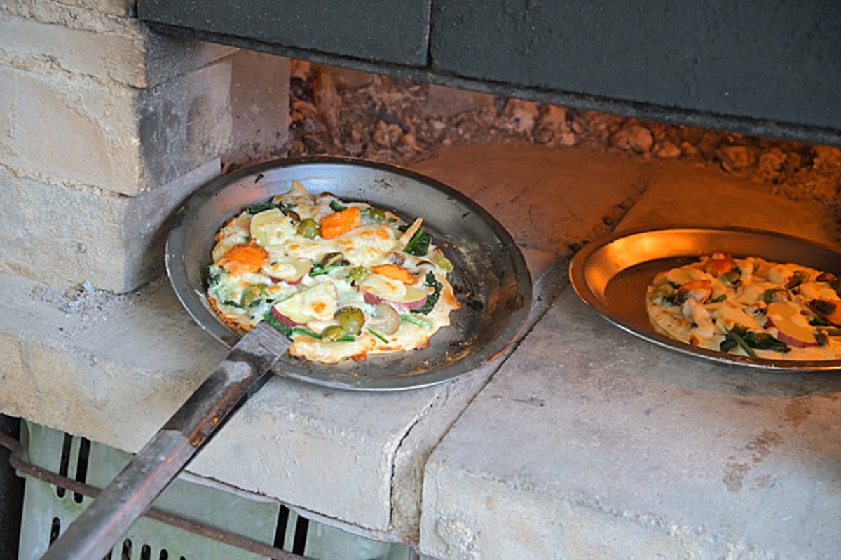 熱々の専用窯で焼かれたピザ。漂う香りに思わずよだれが。