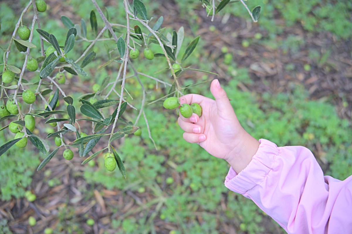 今回のイベントでは、収穫祭にちなんで、オリーブの収穫体験ができました。