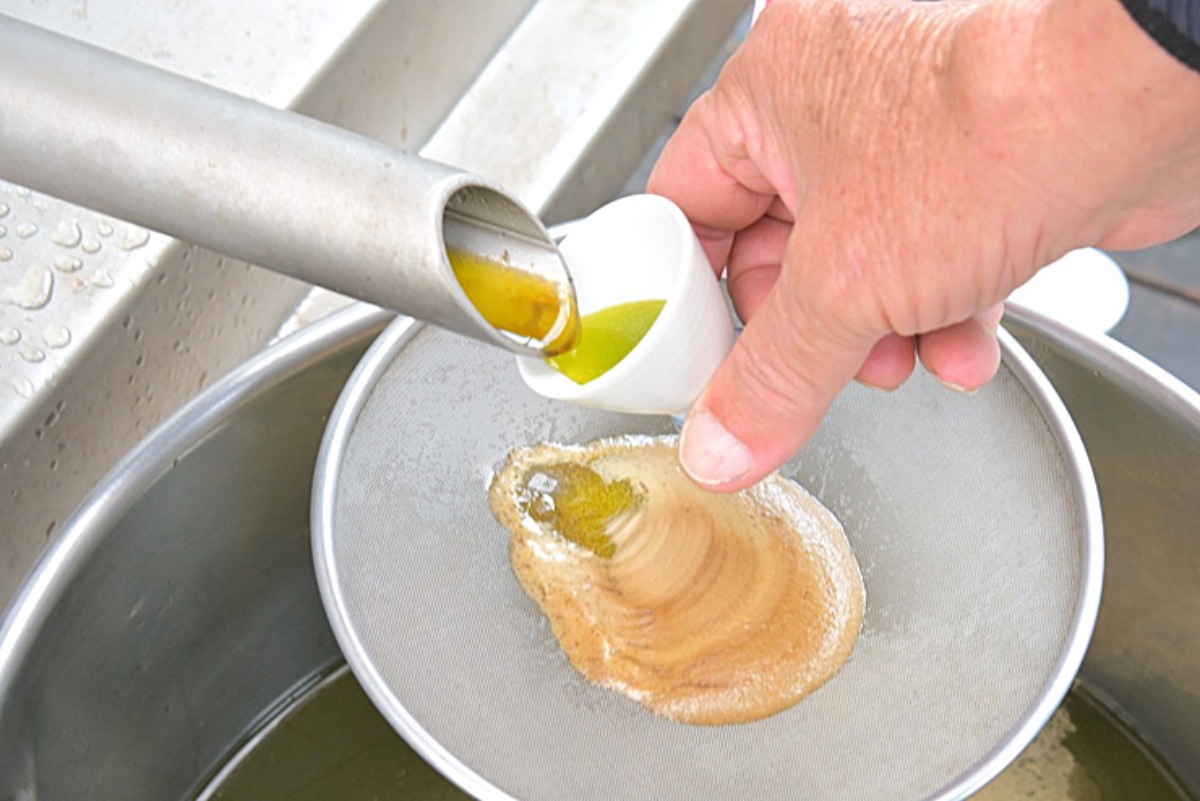 摘みたて、搾りたての、超新鮮なオリーブオイルは、一口飲んだ瞬間に、オリーブの瑞々しく豊かな香りがブワっと広がります。