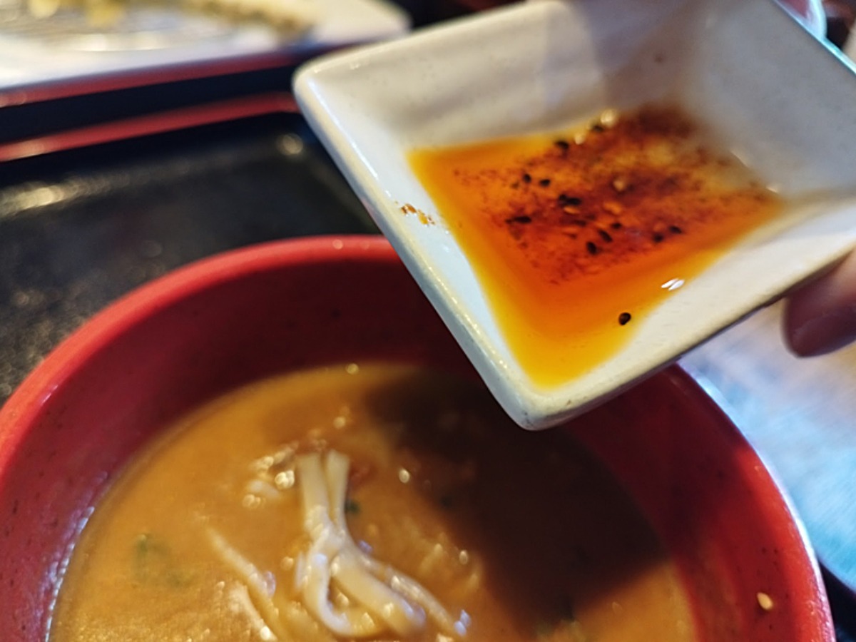 さらに、食事の後半は味変として自家製ラー油を入れて楽しむことも。