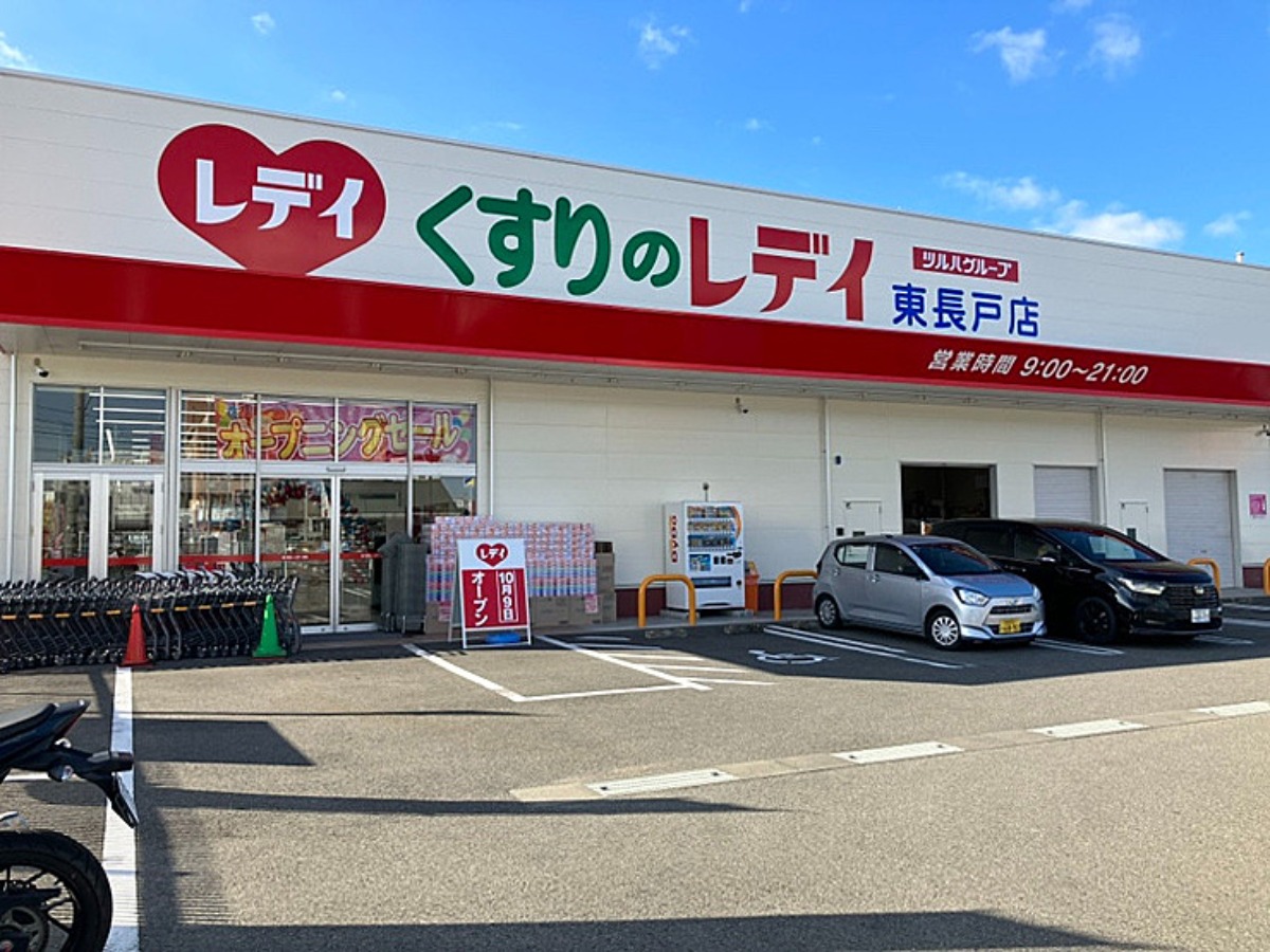 医薬品や化粧品に加え、冷凍食品や日配品なども揃う地域密着型のドラッグストア「くすりのレデイ東長戸店」。