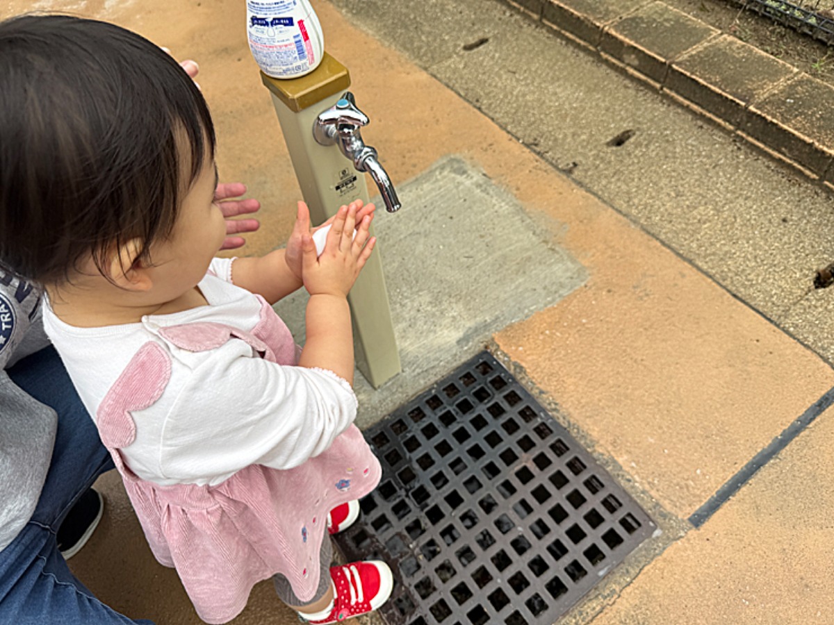 終わった後はすぐ近くの手洗い場へ。ハンカチやタオルを持参しておくと便利です。