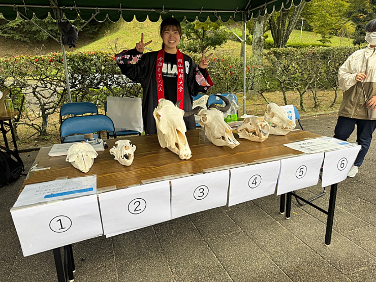 野間馬の骨格標本を当てるクイズや馬術部によるオリジナルグッズが販売されていました。