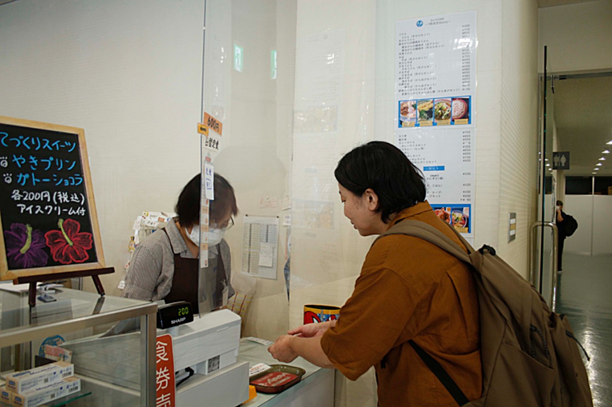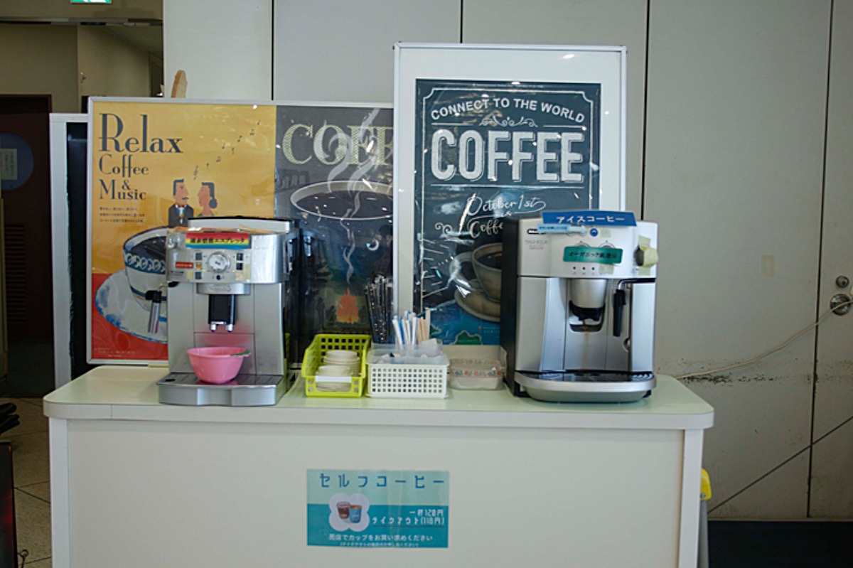 食後のコーヒーもどうぞ。レジでカップを 購入しよう。1杯120円