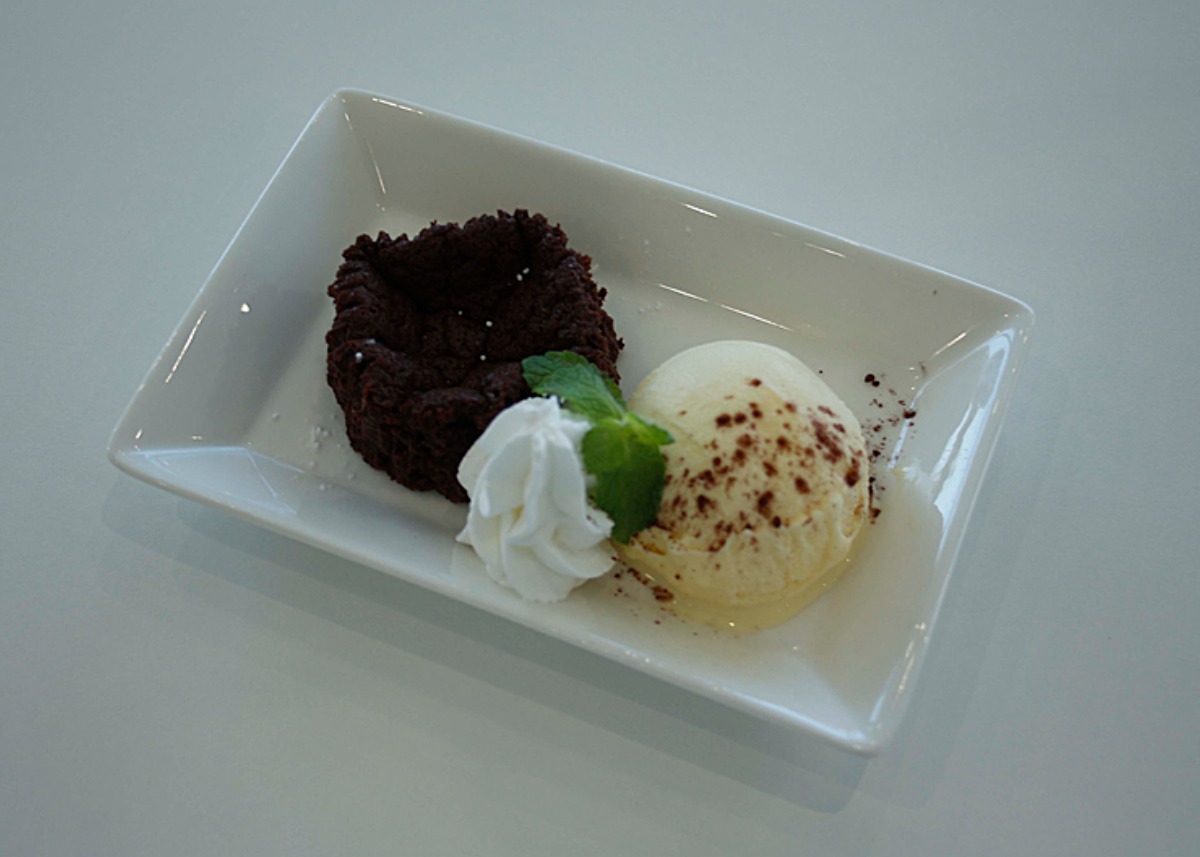 手作りスイーツ(やきプリン、ガトーショコラ)は 配膳はスタッフが行ってくれるので座って待とう1皿200円の良心価格!(写真はガトーショコラ)