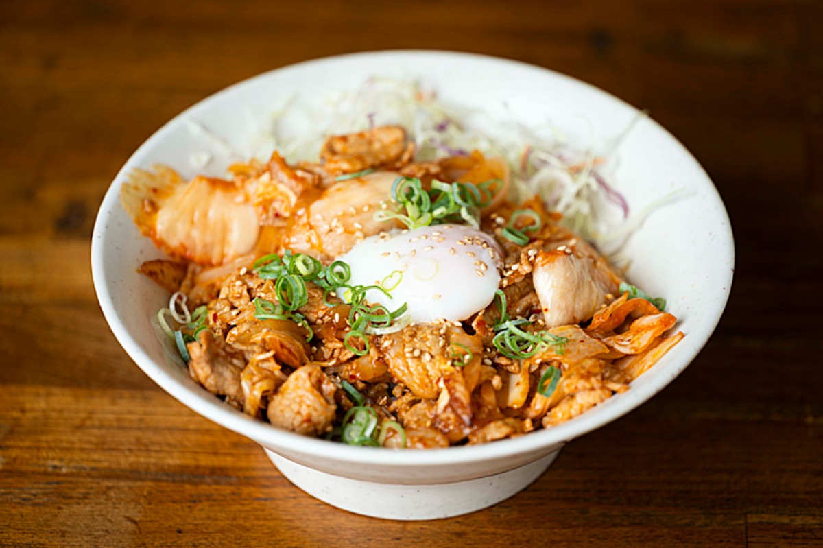野菜炒めの上に豚バラ、醤油ベースの自家製タレをかけたひと皿。タレの単品購入も可能