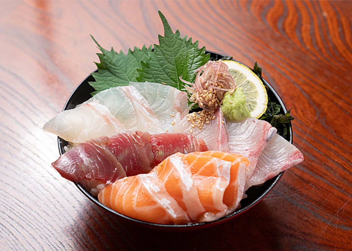 季節の魚介4〜5種が味わえる。店ですりおろす、香り高いワサビがアクセントに