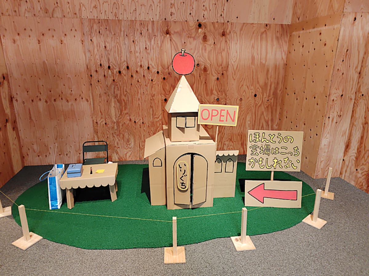 特別展会場に入ってすぐ、段ボールで作られた秘密基地(?)と看板が置かれていました。