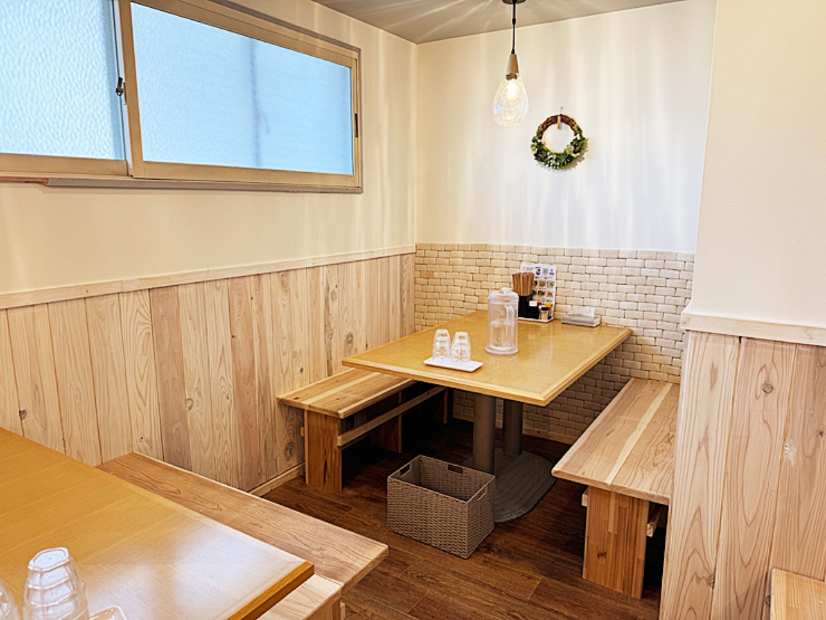 店内は木目調の内装で、カフェのような明るく落ち着いた空間。