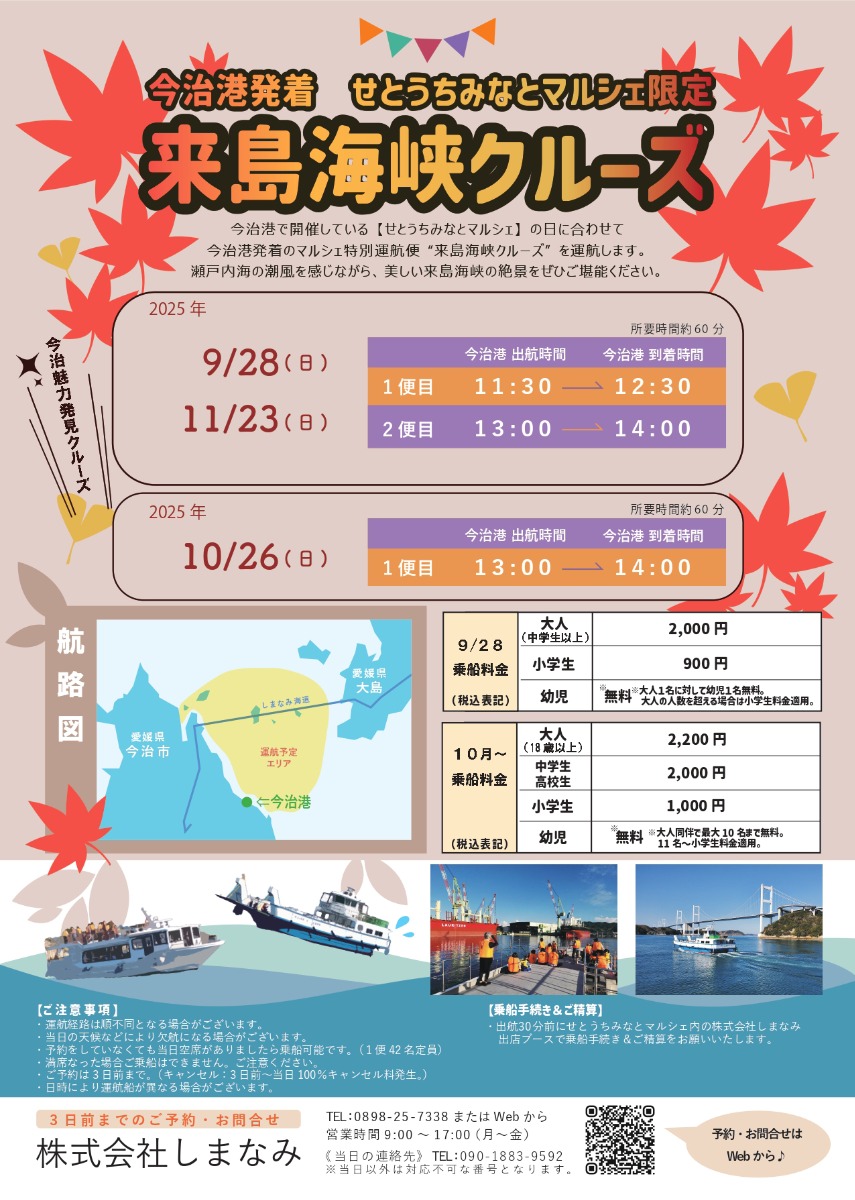 さらに、マルシェ限定で運航される「今治の魅力発見クルーズ」も見逃せません。