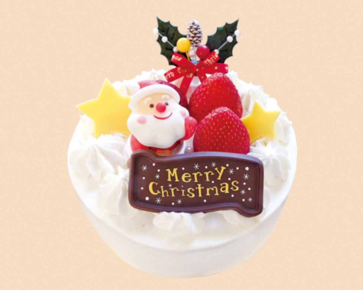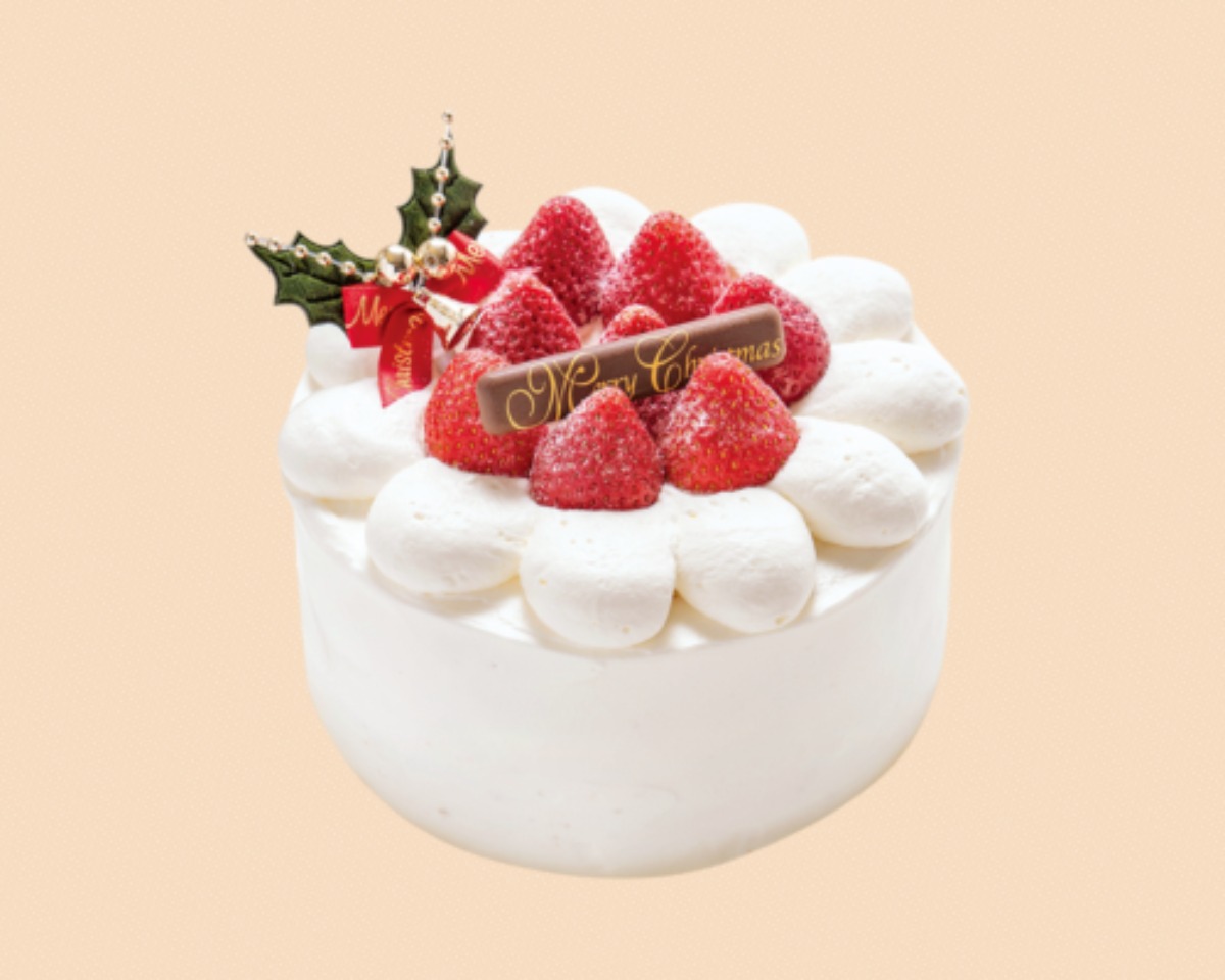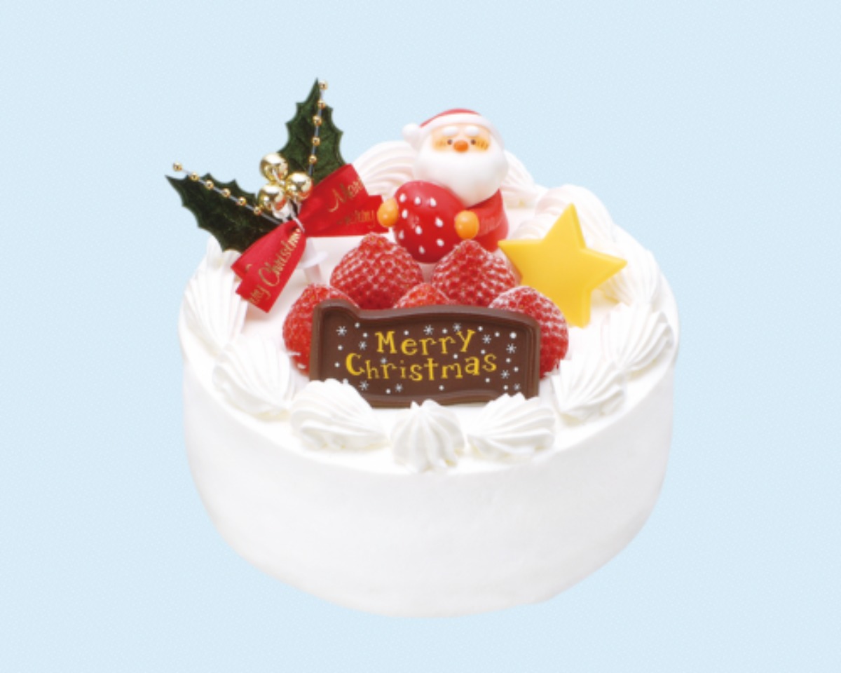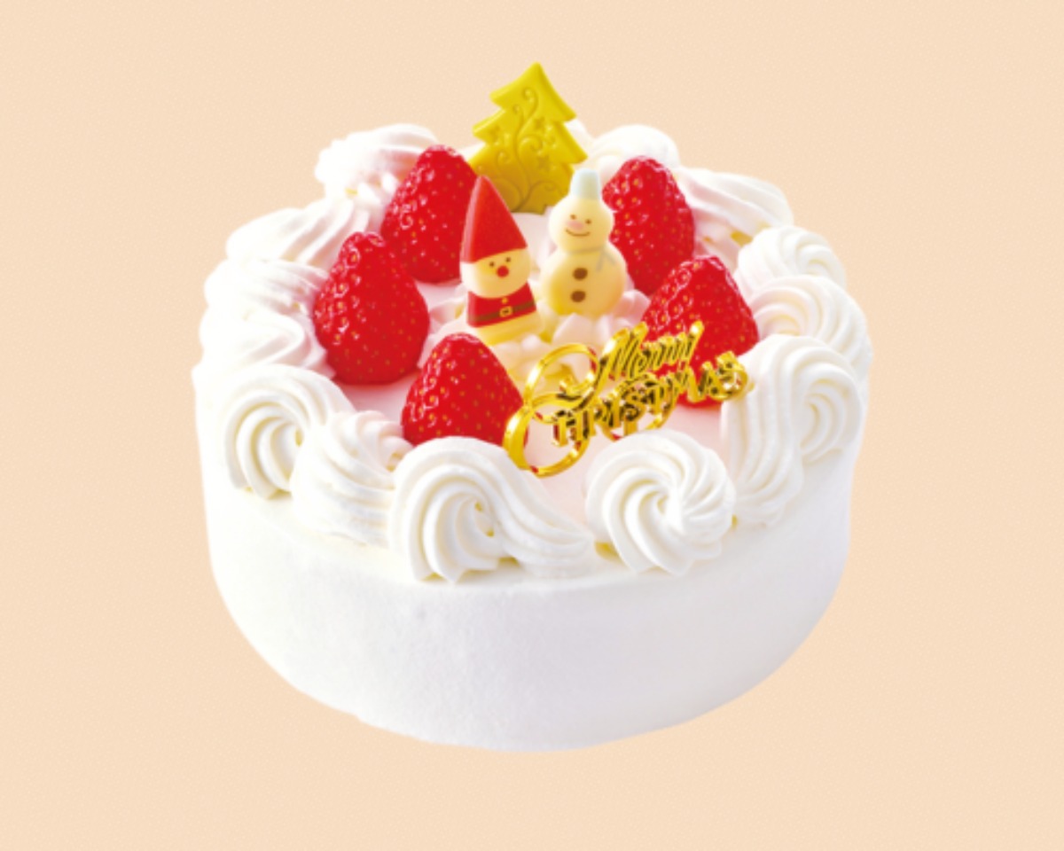 年齢問わず好まれる定番の生クリームとイチゴのクリスマスケーキ。