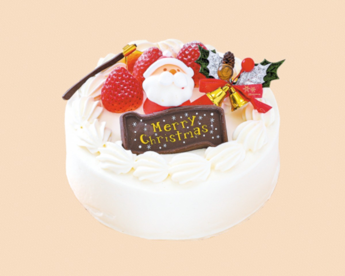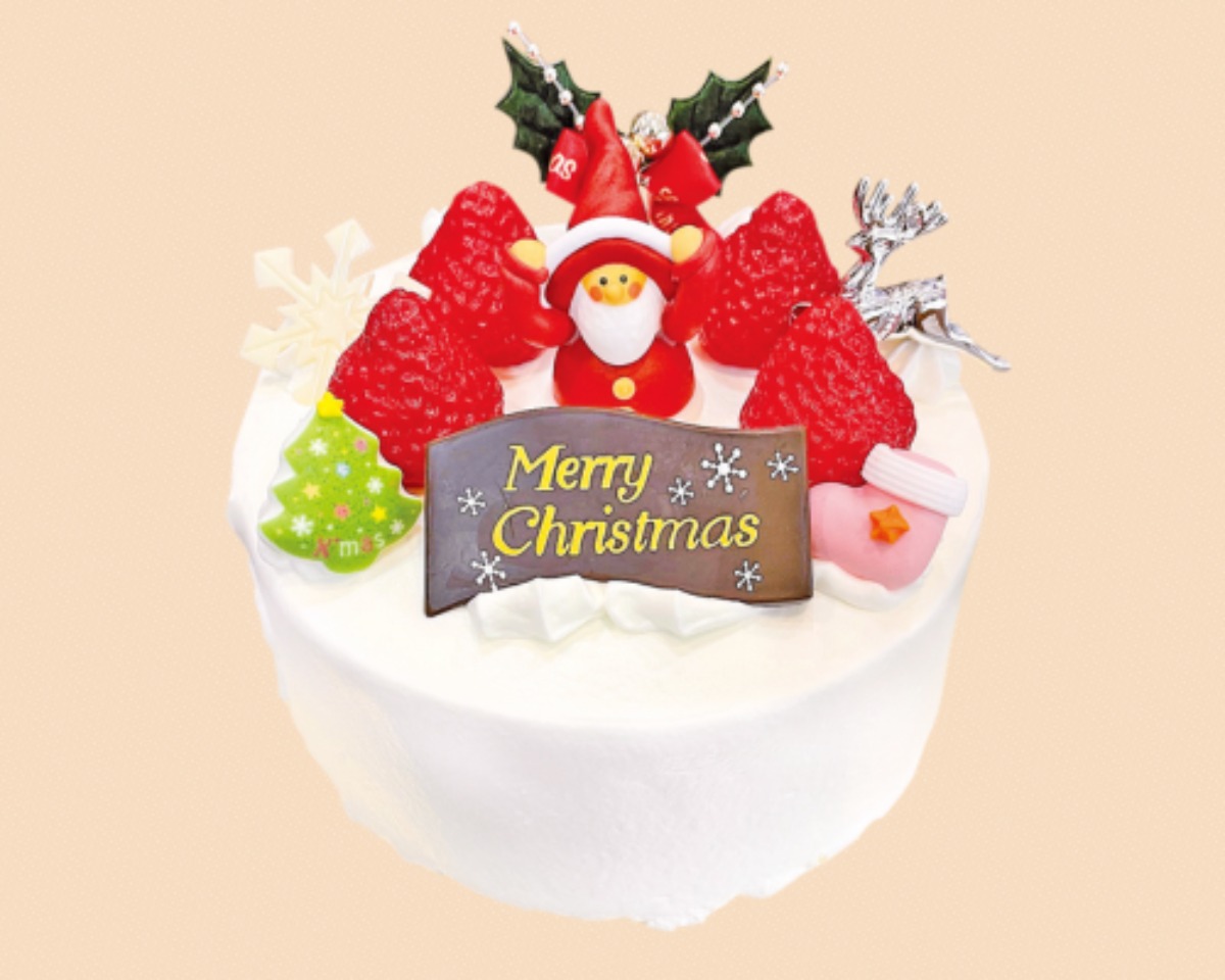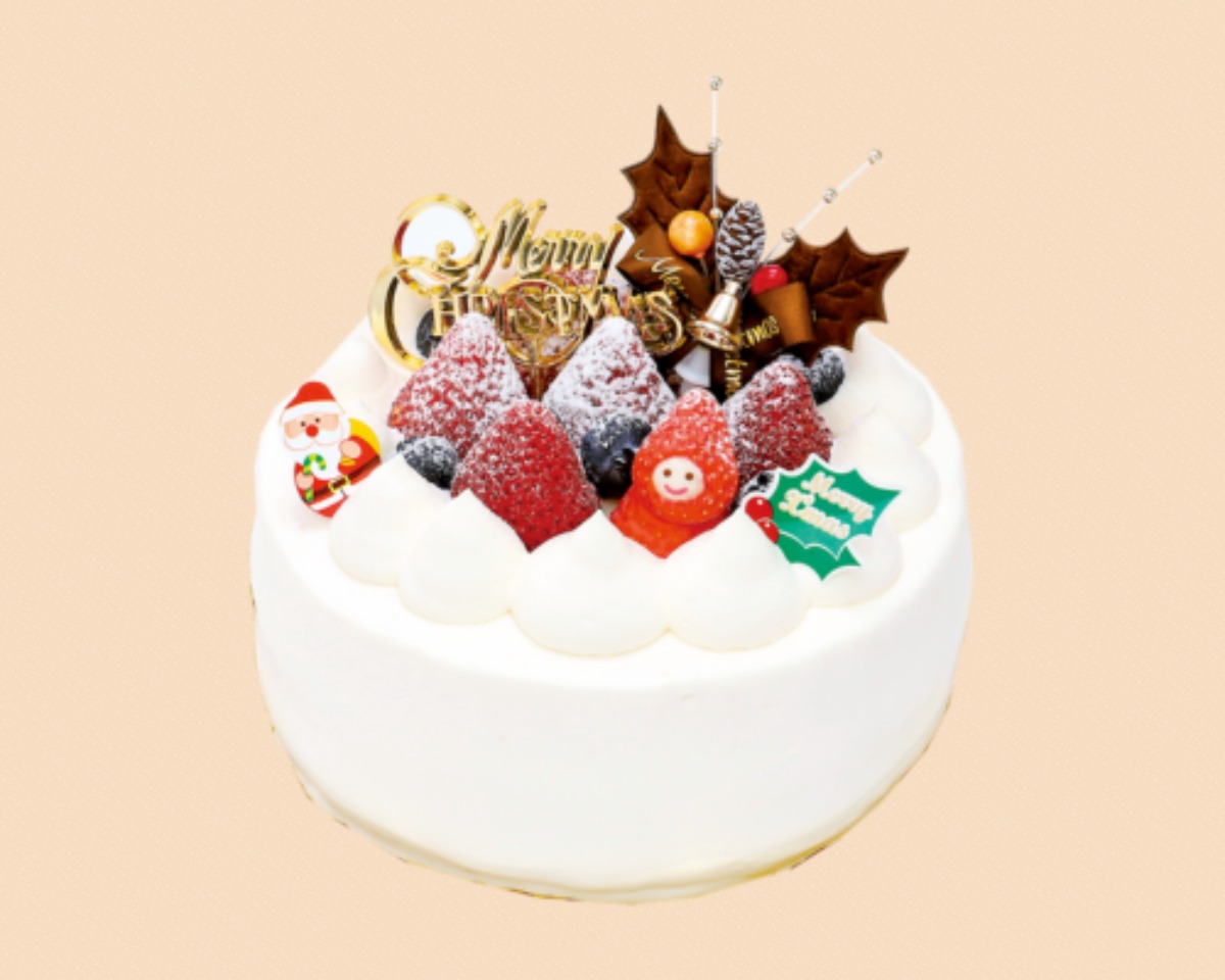 年齢問わず好まれる定番の生クリームとイチゴのクリスマスケーキ。