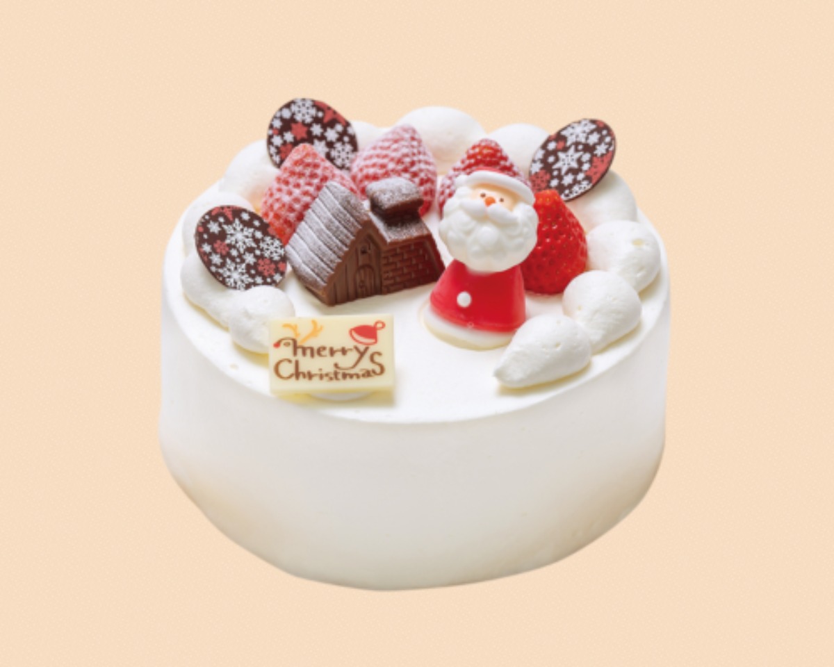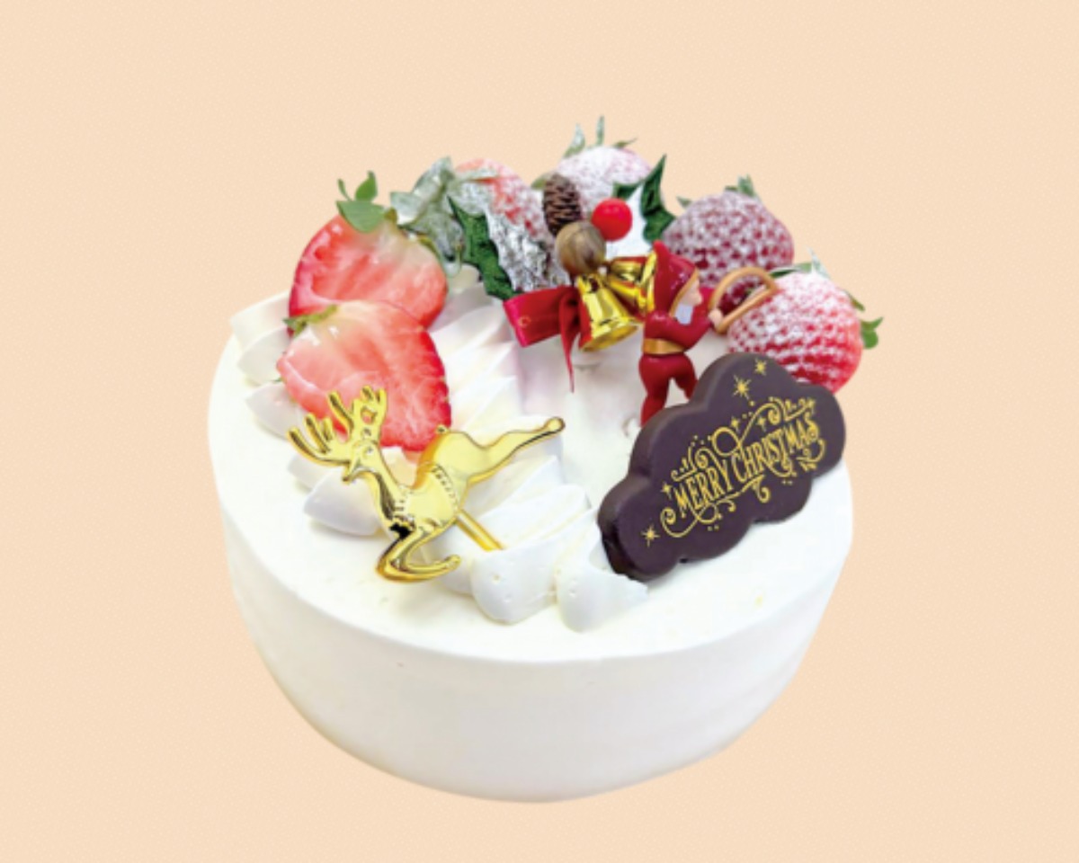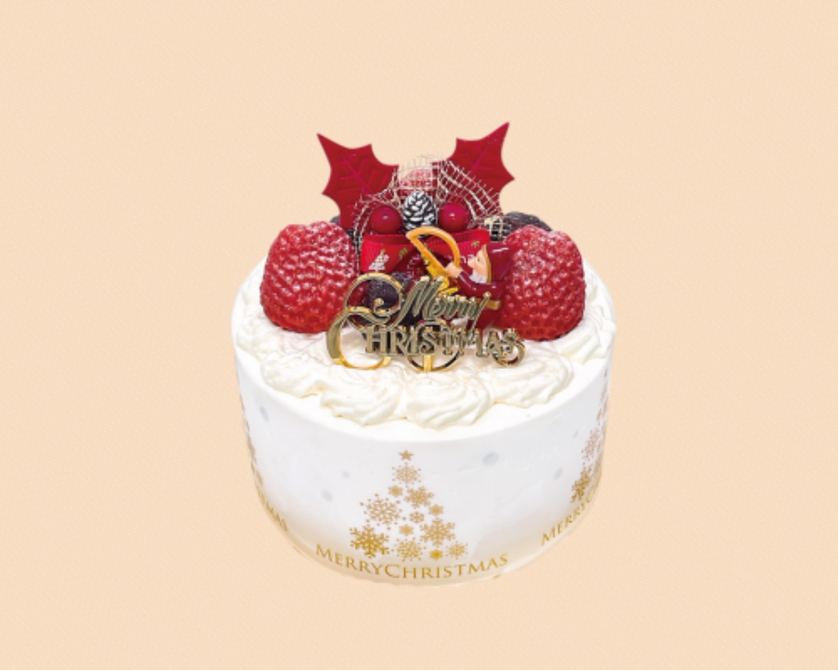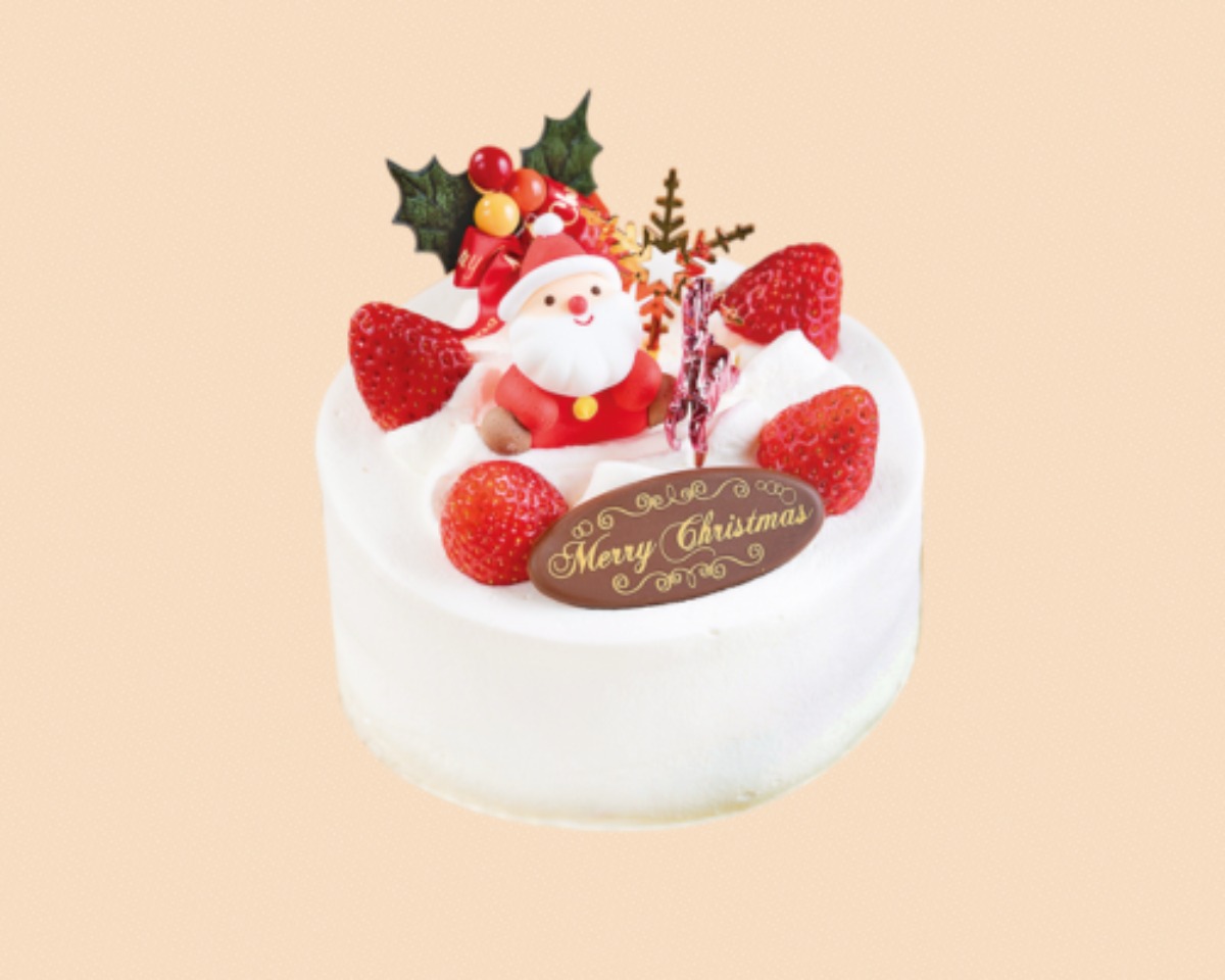 年齢問わず好まれる定番の生クリームとイチゴのクリスマスケーキ。