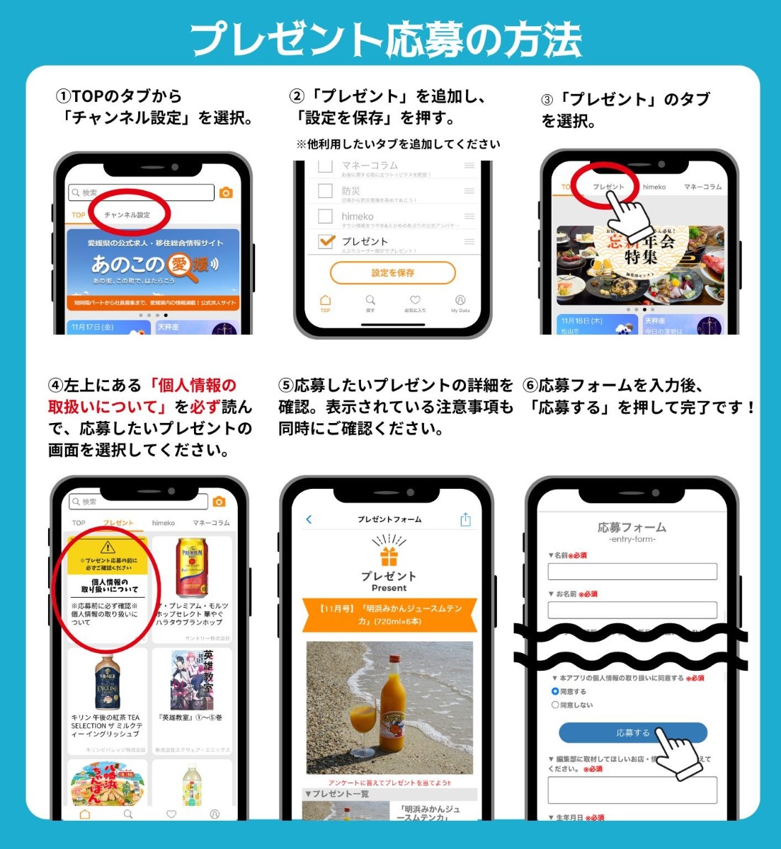 ●応募は「えひめのあぷり」のプレゼントチャンネルから行ってください。