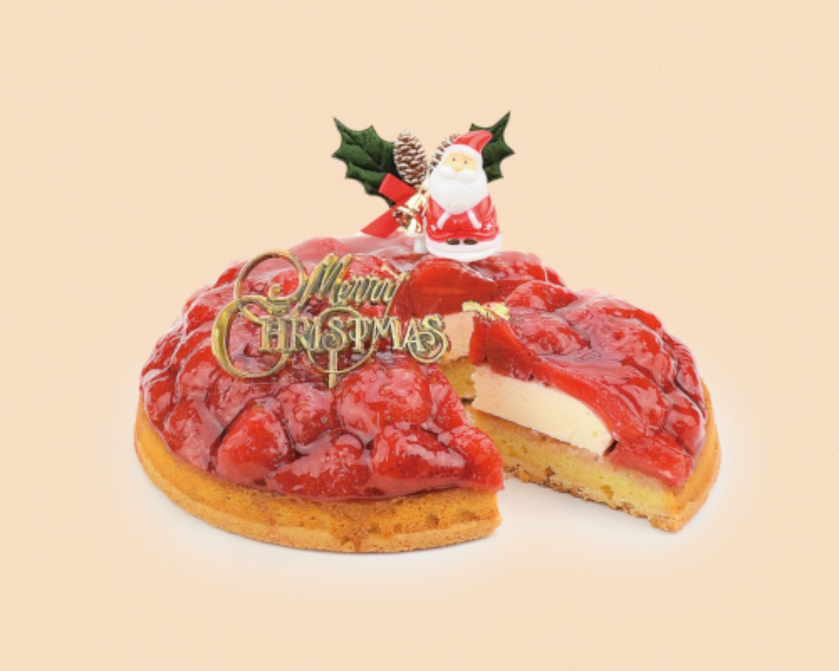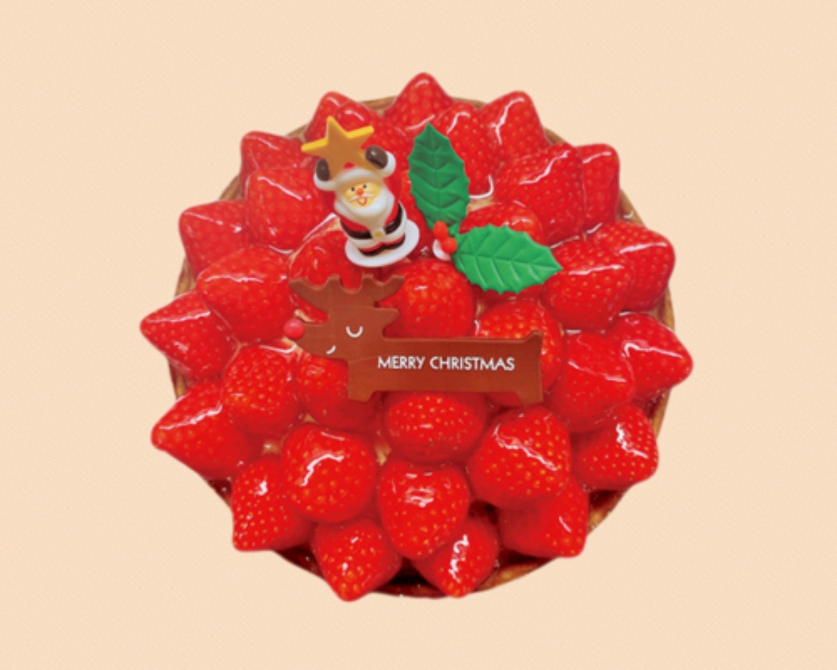 通常の3倍ものイチゴを贅沢に飾り、中にも生イチゴを2段と自家製いちごソースをサンドした、甘さ控えめの豪華なクリスマスケーキ