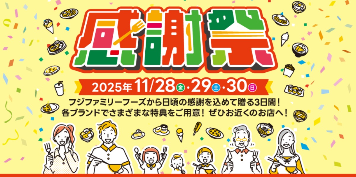 同じく11月28日(金)~30日(日)の3日間、フジファミリーフーズ感謝祭が各店で行われています!