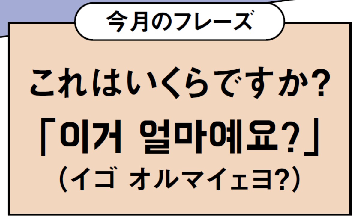 市場では値札のない商品も多く、値段がわからないときはこの一言。韓国での買い物は、このフレーズさえ覚えればもう完璧!