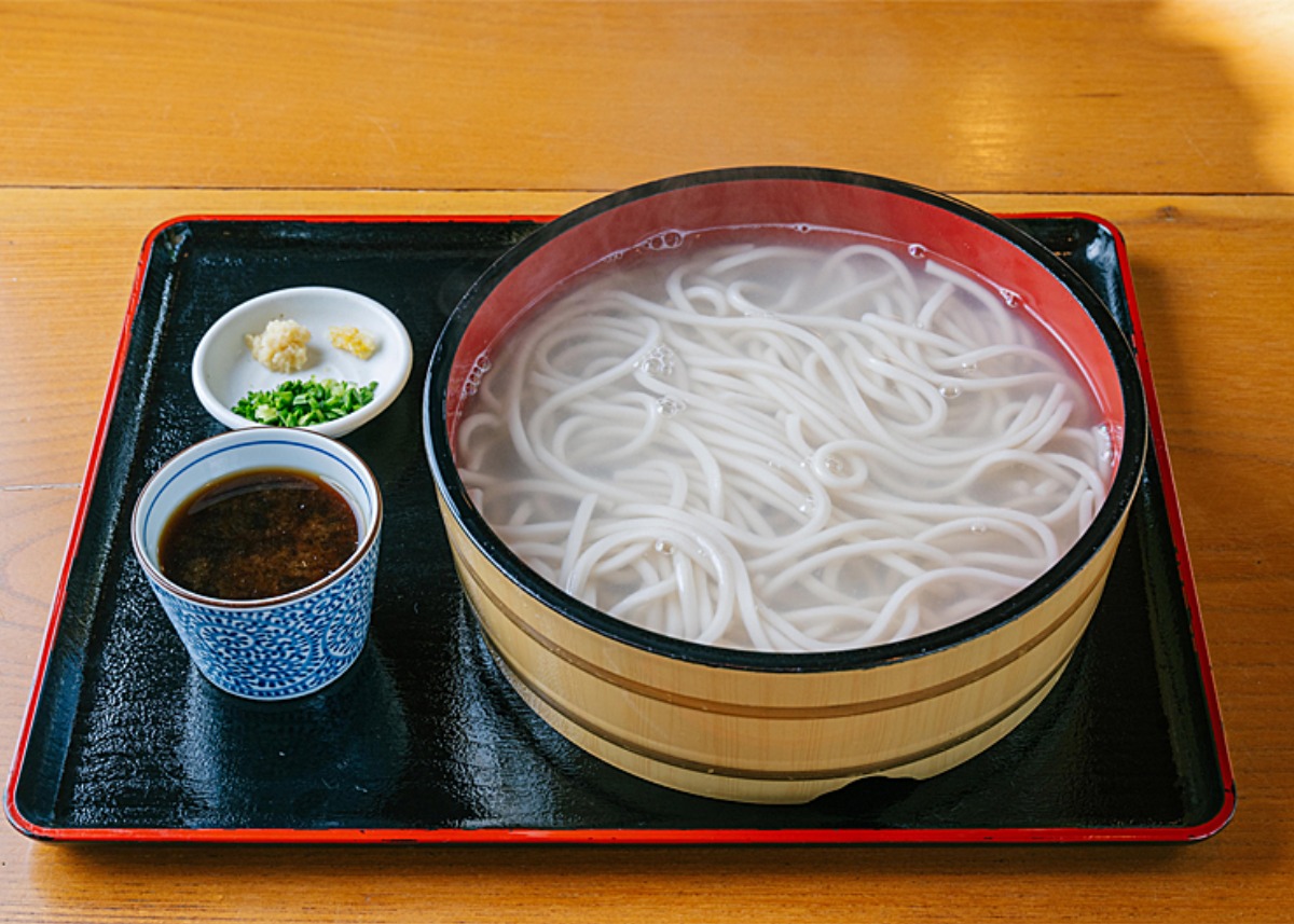小さいたらいで提供される一人前に加え、木製たらいに入った大たらいうどん(並3人前から)もあるので、地域伝統のスタイルで味わうのもおすすめ。