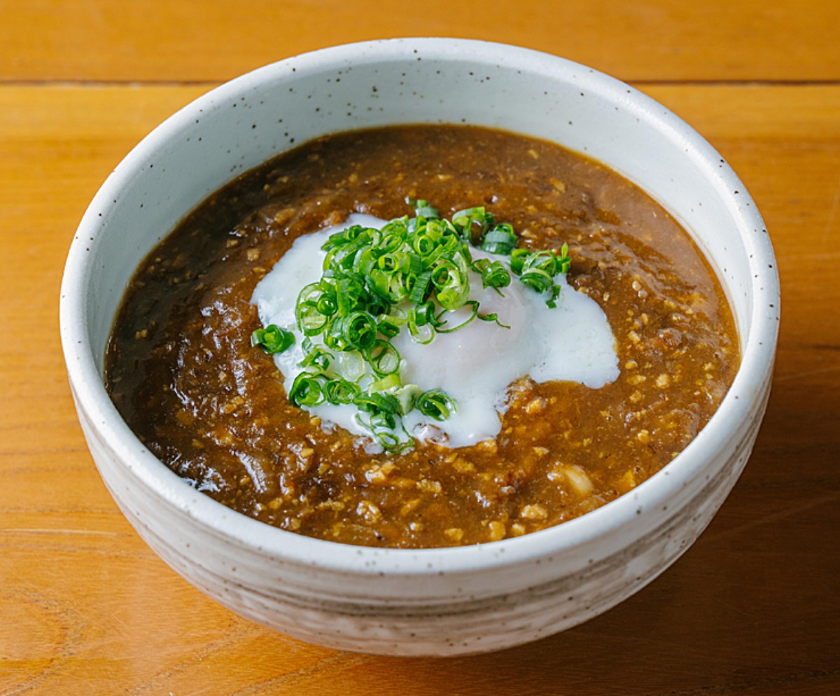 たらいうどんのダシや、香り豊かなカツオ節を加えた和風仕立ての 一杯。温玉でコクと旨さマシマシ