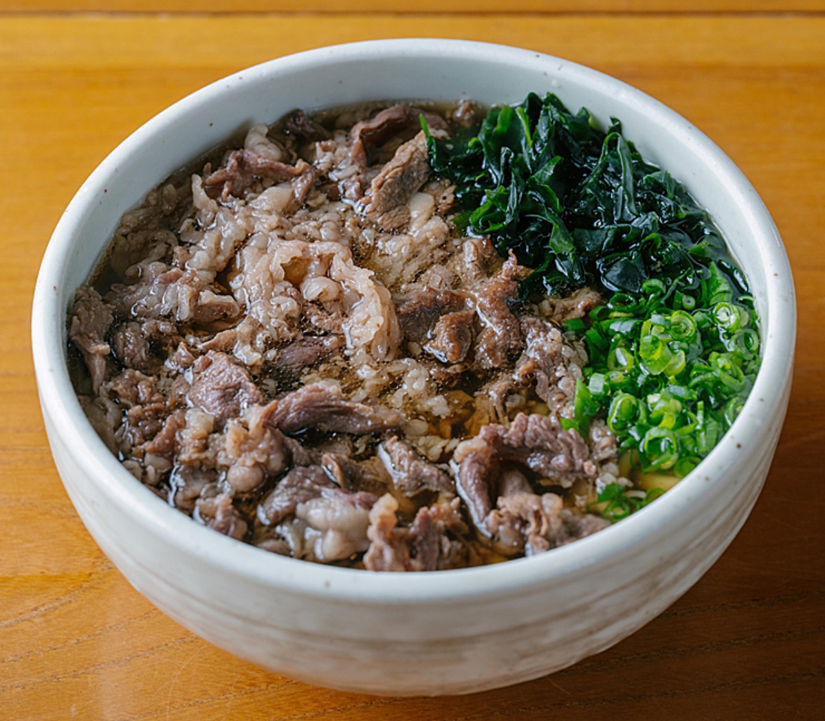 甘辛く煮込んだ特製の牛肉を、丼一杯にたっぷりのせた人気メ ニュー。温玉トッピングもおすすめ