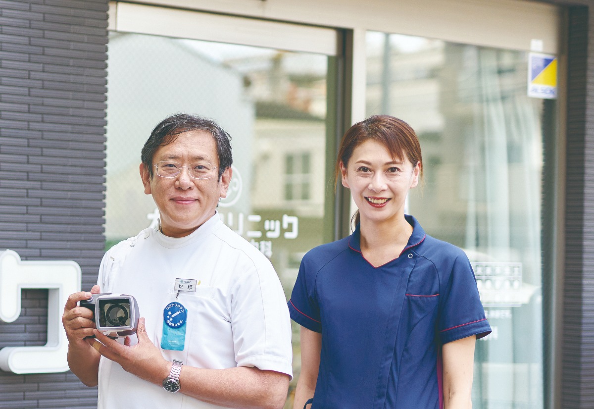 2012年に同院を開業した松原院長と、アートメイクを提供する看護師の福山さん。内科・消化器内科を中心に様々な医療を提供する