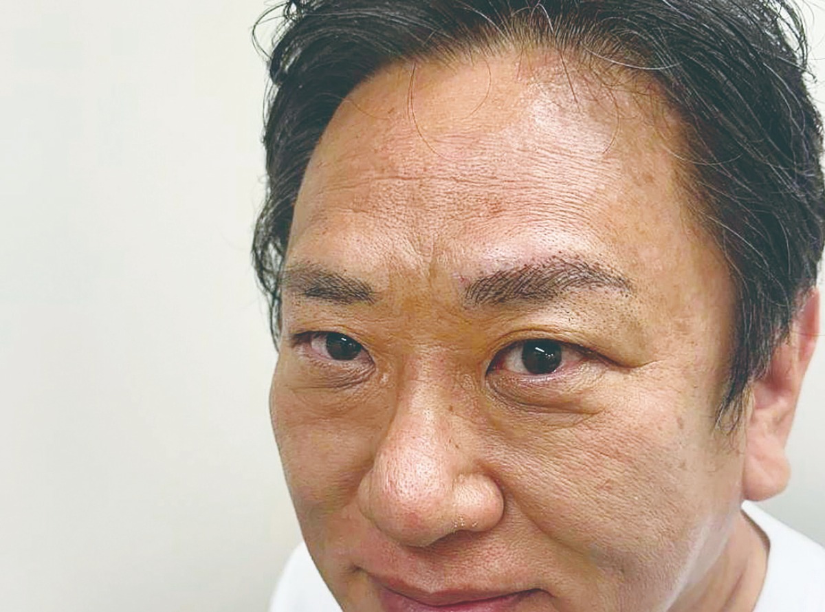 近年、男性からも人気を博している「眉アートメイク」は、眉の形や毛並みをムラなく整え、清潔感のあるナチュラルな仕上がりを得ることができる。第一印象を大切にしたいビジネスマンにおすすめ。※写真モデルは院長