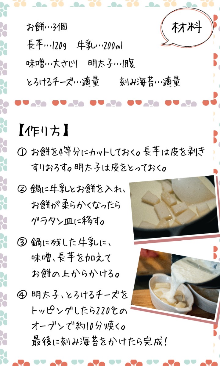 トロリとした長芋と、お餅の弾力がベストマッチ。双方の口当たりのよさを生かした、なめらか食感のグラタンです。ほんのり香る味噌も上品な味わいですよ♪