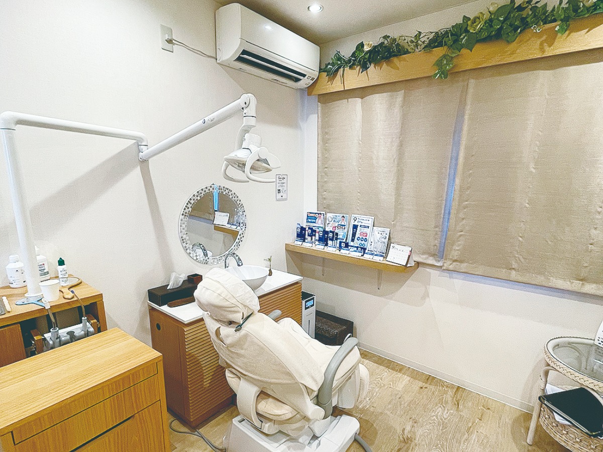 ▲まるでサロンのような専用個室でホワイ トニングなどの施術を受けられる