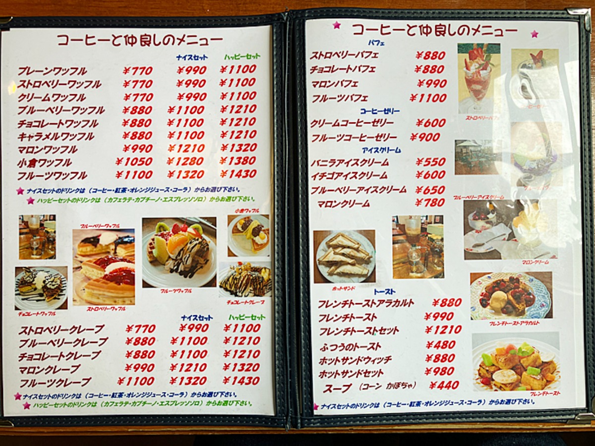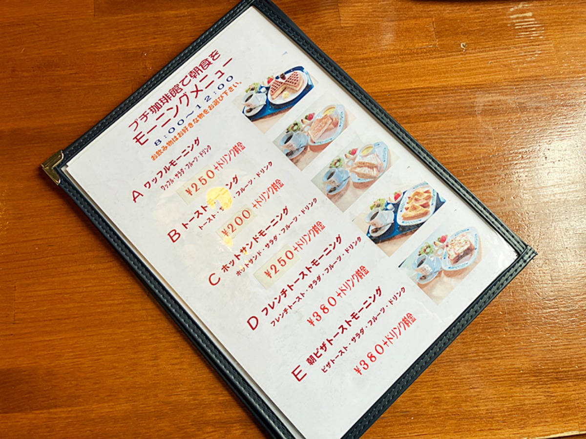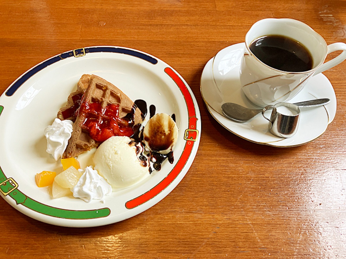 ゆったりとした店内で、熱々の鉄板ナポリタンから食後のワッフルまで存分に楽しめたプチ珈琲館。