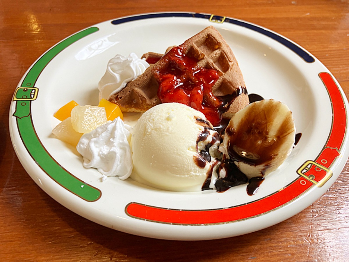 デザートを確認してみると、4分の1サイズのワッフルにアイスクリームがついてくるとの事。