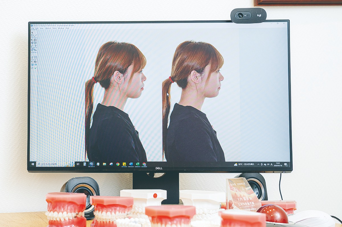 口腔内の型取りやレントゲン、写真などのデータをもとに、AIソフトで治療後のシミュレーションを作成。患者の要望やエステティックラインなども踏まえ、「なりたい顔」を目指して矯正治療に臨むことができる。