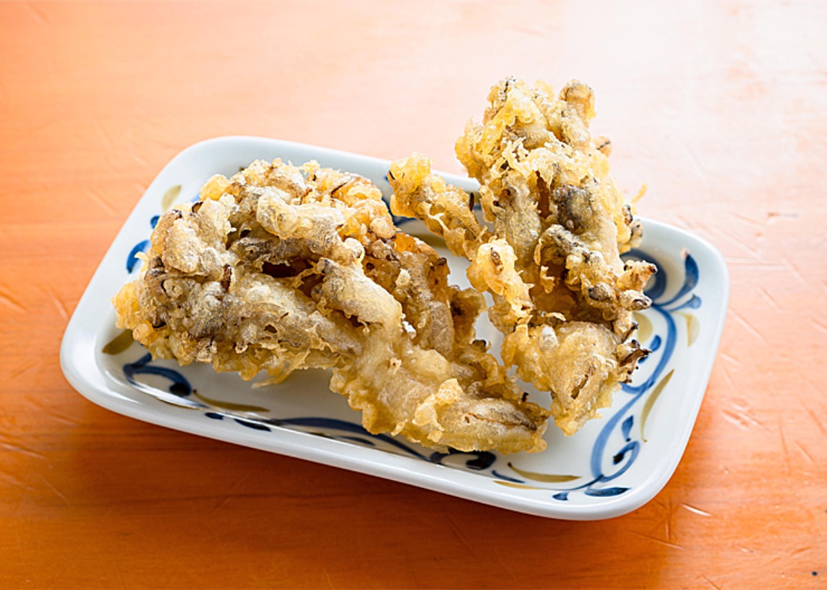 県内では「空太郎」だけが取り扱っている、群馬県産の「100日まいたけ」を米油で揚げた天ぷら。