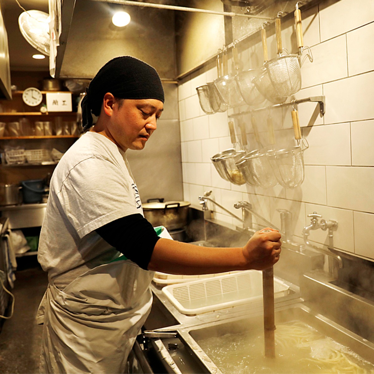 国産小麦100%のうどん専用粉「うどん日本」を使った自家製麺は、しっかりとしたコシが特長で、いつも茹でたてで提供される。