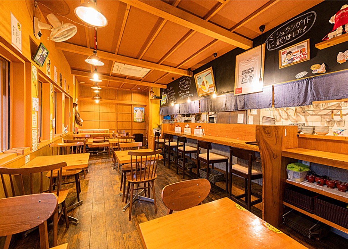 カウンター席やテー ブル席、店内奥に小上がり席も備える。大人も 子どもも利用しやすい
