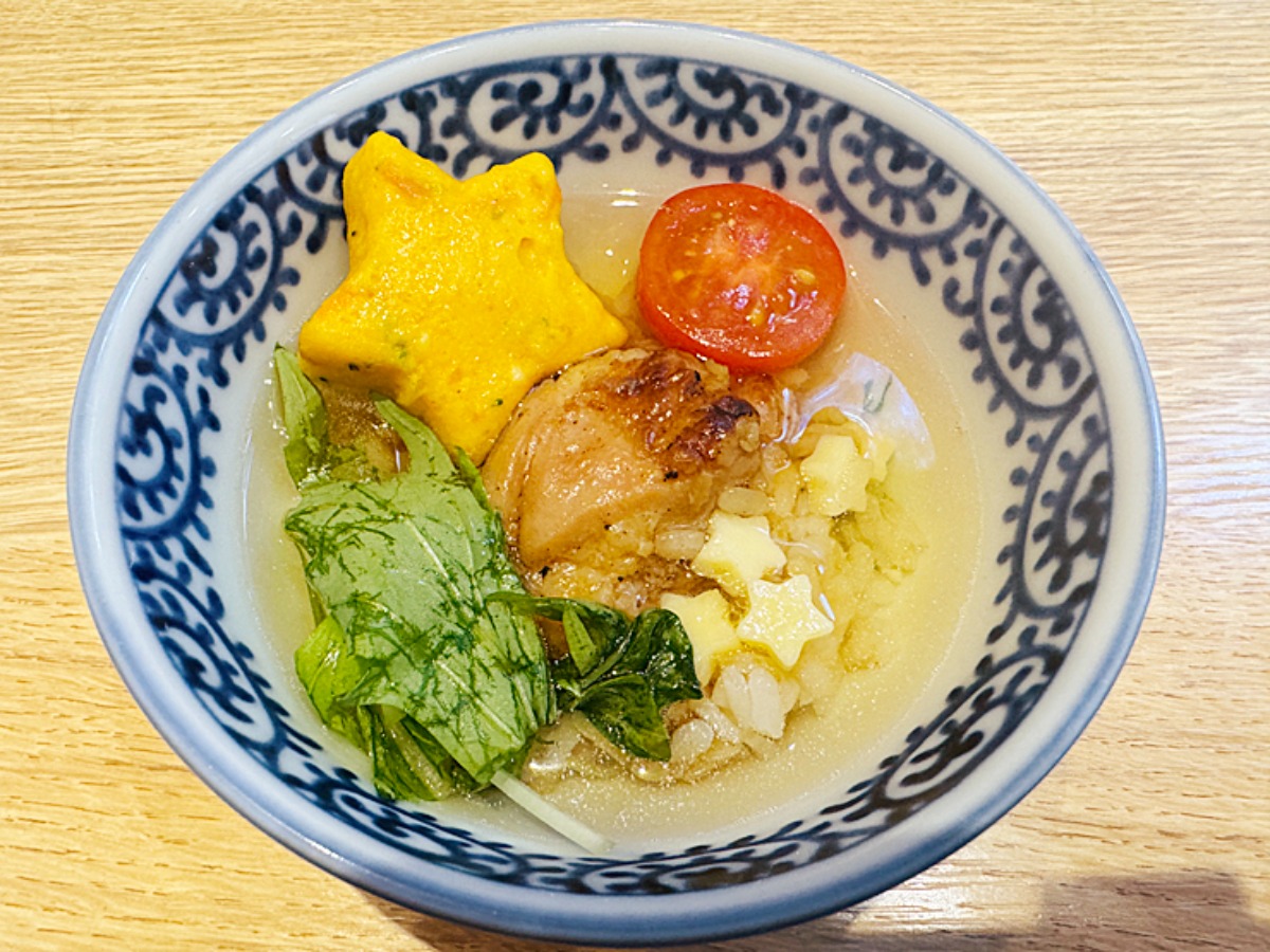 だしにチキンの香ばしさが移り、チーズがとろりと溶けて、ふんわり洋風テイストに。