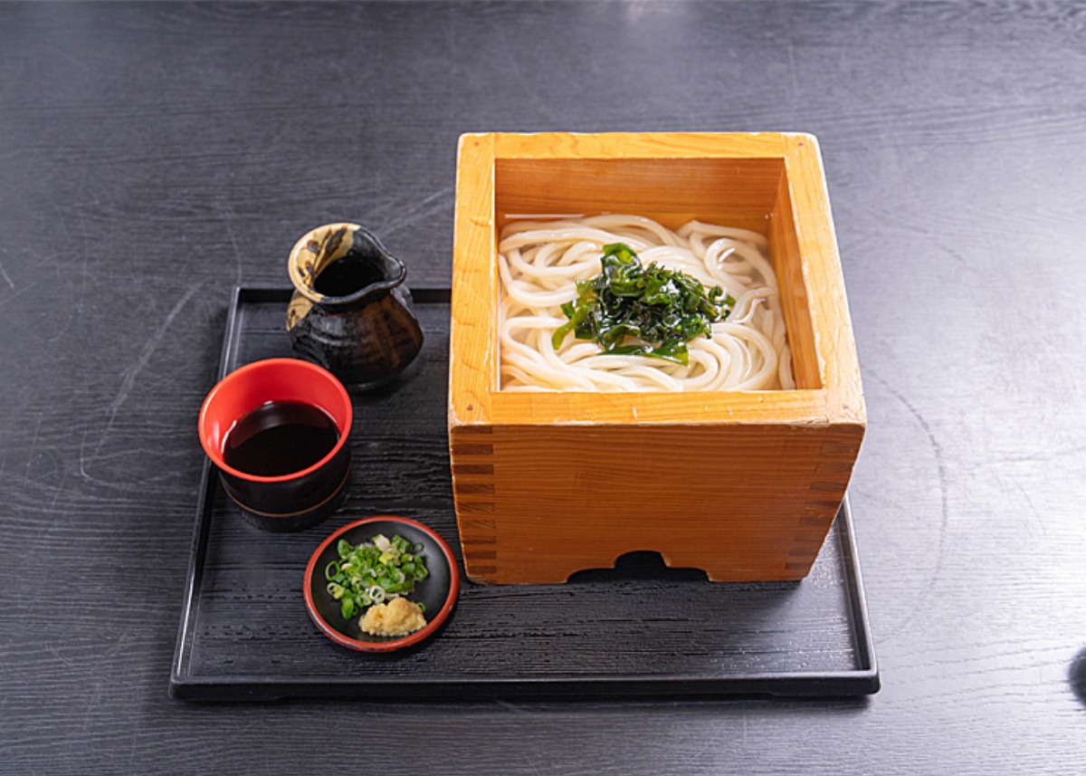1人前は350g、大盛りになると 600〜700gの特大ボリューム! な めらかな麺は喉越しよく、するする と胃袋へ