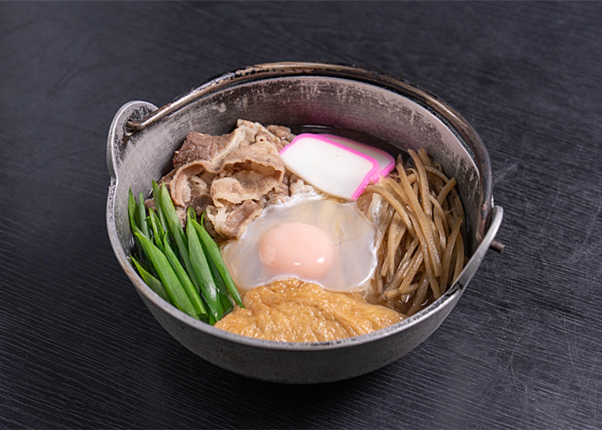 鉄鍋で熱々を提供してくれる煮込みうどん。肉や卵、お揚げなど具材もたっぷりで食べごたえ十分