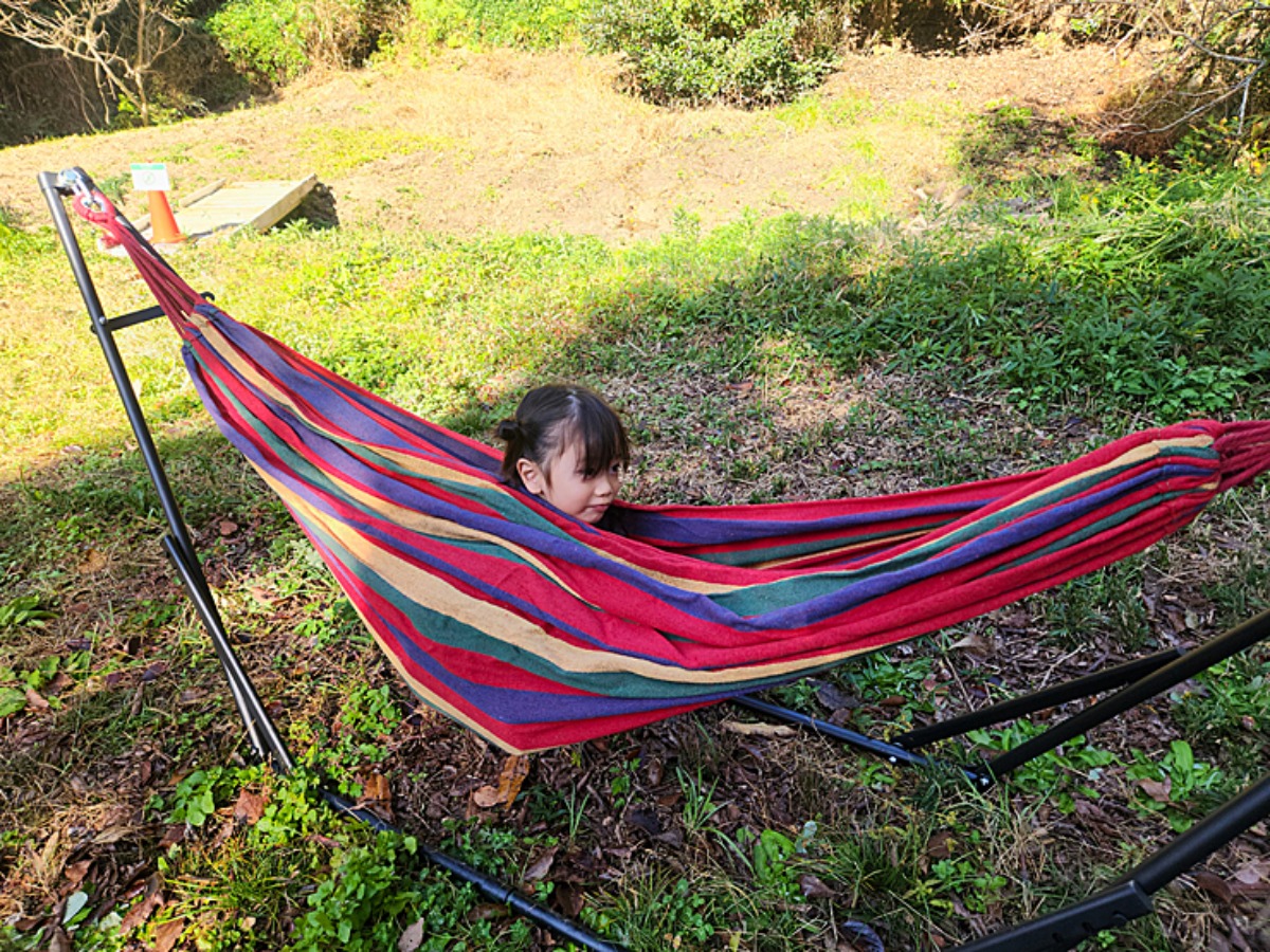 近くにはハンモックもあって、ちびはのんびり揺られていました。笑