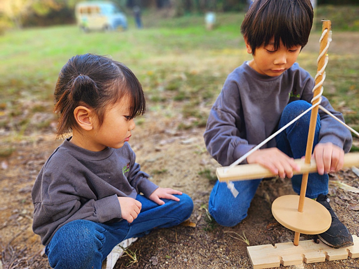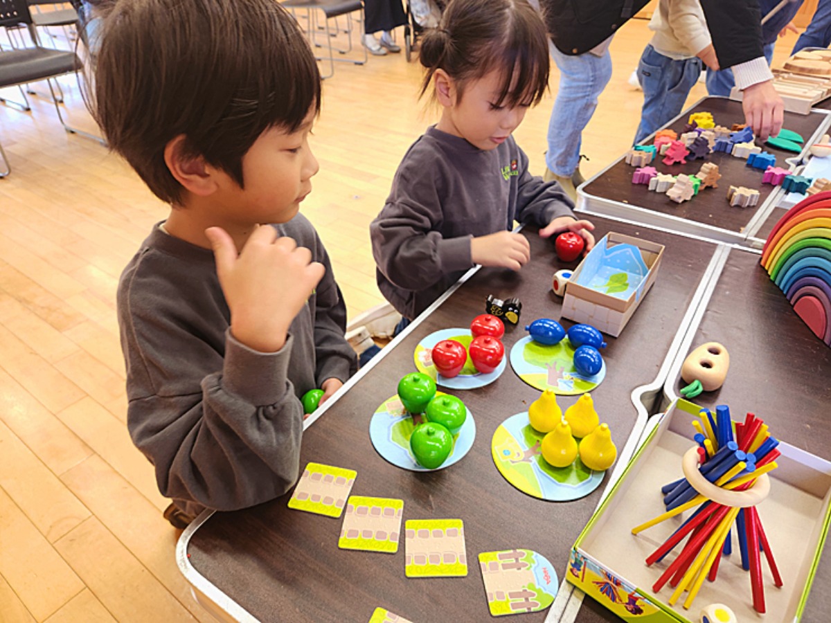 木のおもちゃの優しい感触に触れながら兄弟で楽しんでいましたよ。